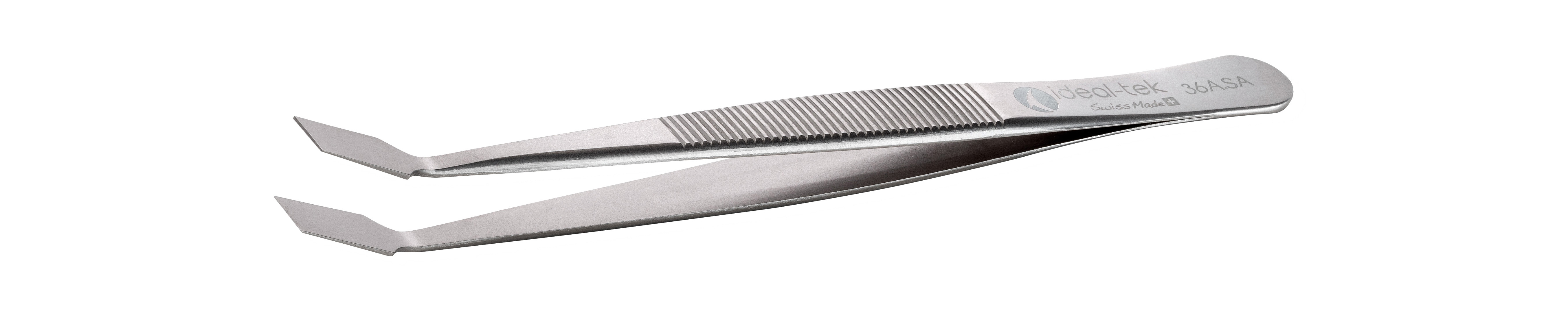 扁头镊子 - 抗酸/抗磁不锈钢 - 锯齿手柄 - 头部:光滑,薄,方,扁平,超精加工。总长:120mm - 4.72″