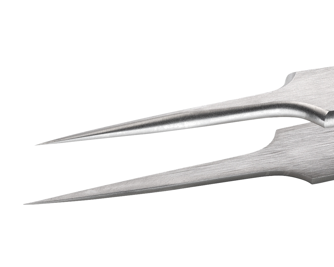高精密镊子 - 抗酸/抗磁不锈钢 - 头部:直,特精细,特锋利,超精加工。总长:140mm - 5.51″