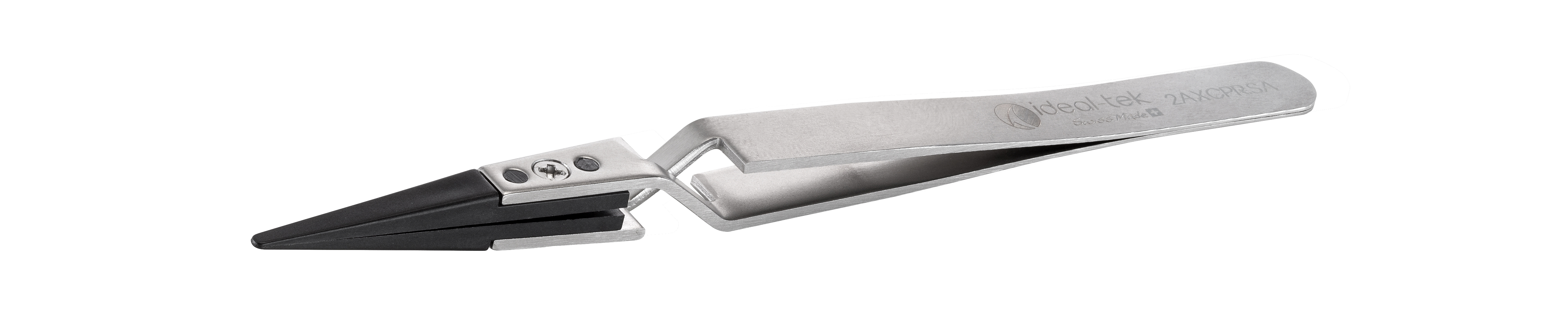 可换塑料头镊子 - 碳纤维增强聚醚醚酮 - 反向 - 头部:直,特精细,圆,平(#A2ACP)。总长:130mm - 5.12″。静电安全